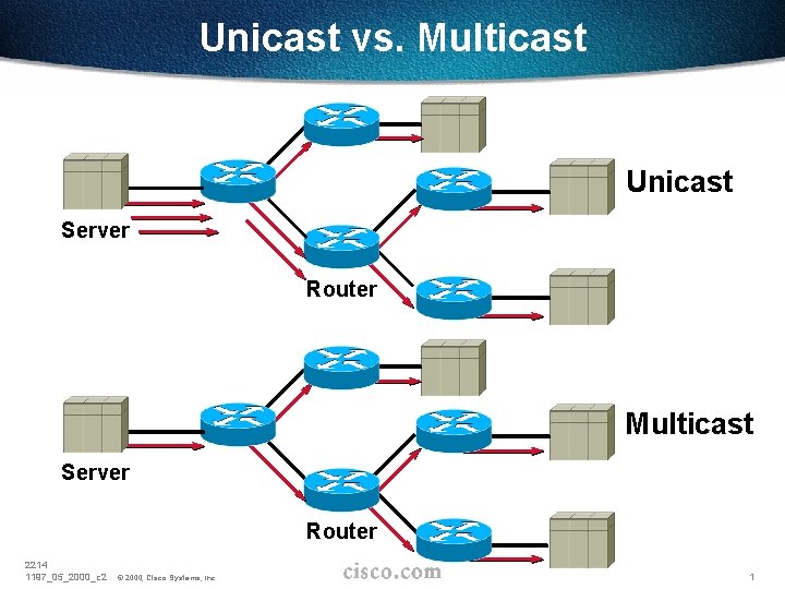 · Multicast có thể tiết kiệm được băng thông đáng kể (lên tới 1 / N băng thông so với N là một khách hàng riêng lẻ). Băng thông mạng được sử dụng hiệu quả hơn vì luồng dữ liệu được thay bởi nhiều luồng cục bộ bằng cách sử dụng unicast.